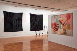 To some of us, the forms on the black paintings may connect with Chicano velvet paintings from the American side of the Pacific, but these paintings are more than just political gestures – Pataialii’s embrace of the particular visual play of light and shadow in the black mink blankets also pays homage to Ralph Hotere’s Black Paintings.