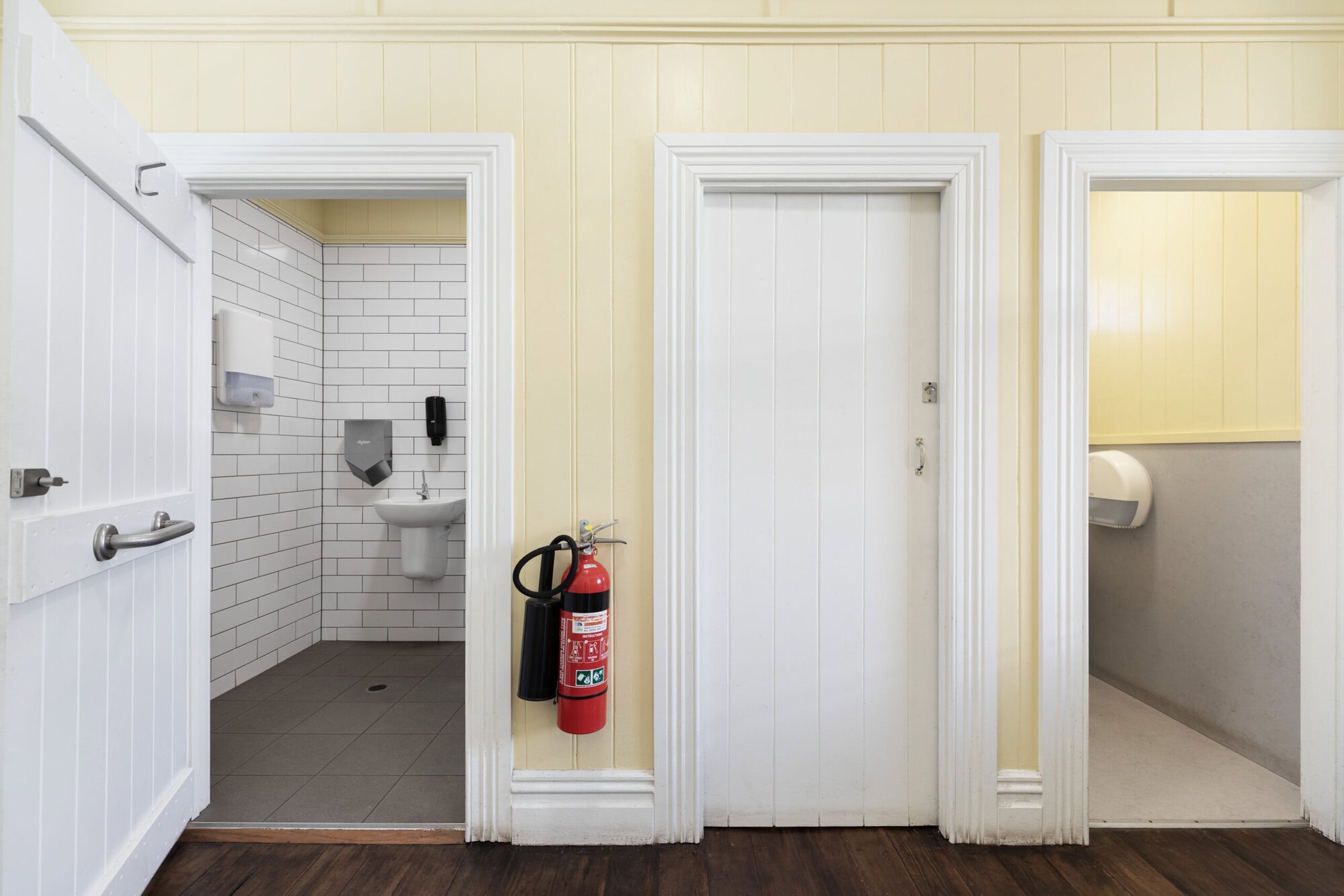 Toilets can only be accessed by the public when there is an event at the Parnell Project Space. The entrance to the toilets is the left-most doorway along the station building.